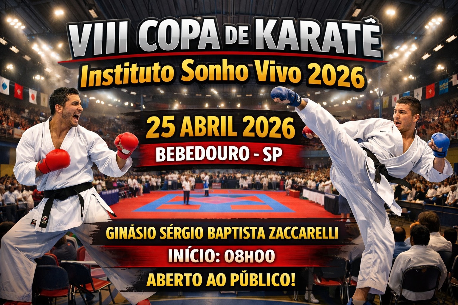 A emoção do karatê vai tomar conta de Bebedouro! 8ª Copa Instituto Sonho Vivo de Karatê📅 Data: 25 de abril de 2026📍 Local: Ginásio Sérgio Baptista Zaccarelli (FECCIB Velha)📌 Cidade: Bebedouro –…